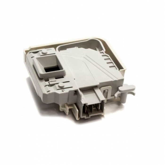 Замок блокировки люка имеет три контакта для подключения и крепление под защёлки.